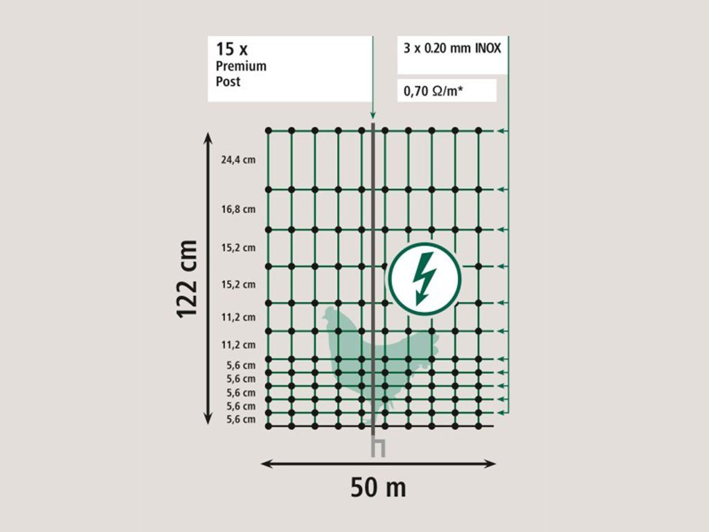 Síť pro drůbež 122 cm x 50m - vodivá, dvojitý hrot